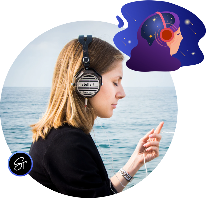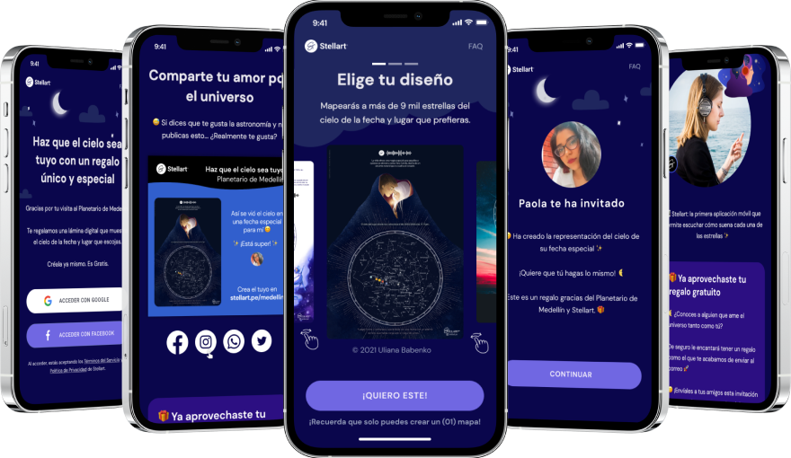 De tu mapeo único, nuestra app móvil convierte el brillo, el color y la posición de las estrellas en una melodía especial.